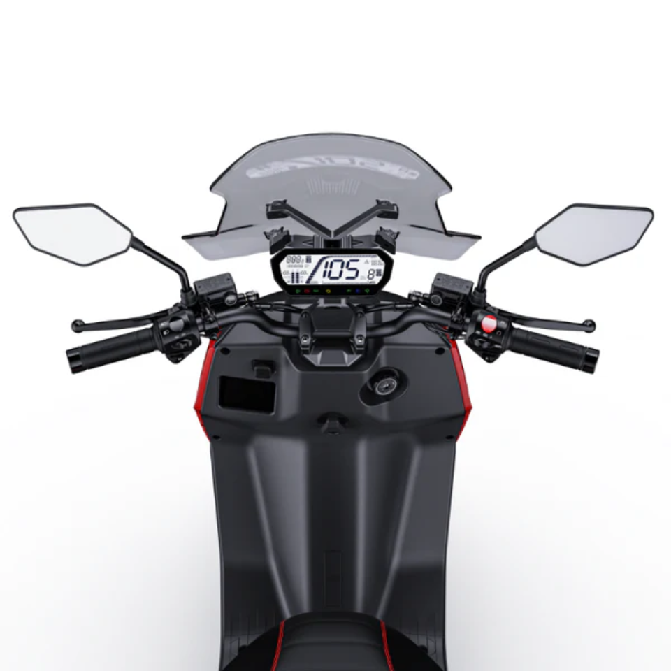 Elektrický skúter SUPER SOCO CPX PRO ponúka vďaka svojmu prepracovanému a na detaily orientovanému dizajnu dostatočný priestor na uloženie vašich vecí počas jazdy. Vďaka ľahkému hliníkovému rámu a nízkemu ťažisku sa s ním ľahko manévruje nielen v mestských uliciach, ale aj na kľukatejších cestách.