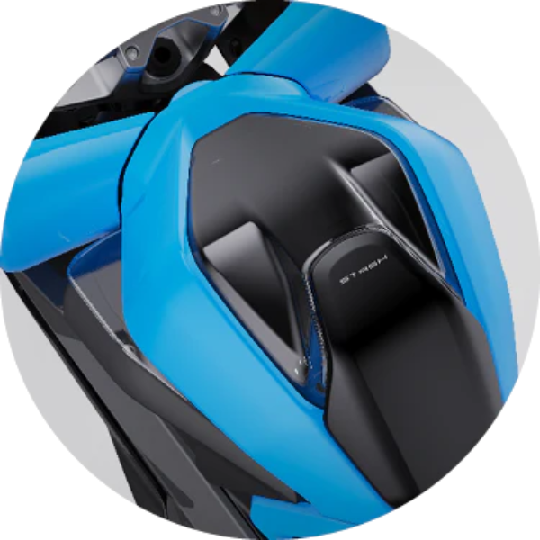 Úložný priestor v prednej časti motorky bol špeciálne navrhnutý s ohľadom na vaše pohodlie, pre praktický a bezpečný spôsob uloženia vašich vecí.